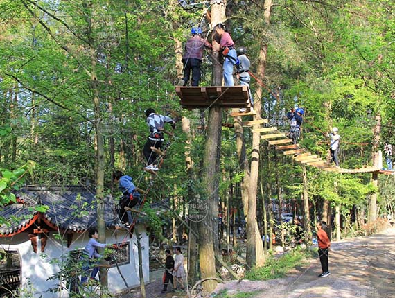 叢林探險(xiǎn)項(xiàng)目特征:叢林探險(xiǎn)(樹上探險(xiǎn))項(xiàng)目是在大樹之間設(shè)置的運(yùn)動繩索、軟橋或繩網(wǎng)等有挑戰(zhàn)的項(xiàng)目,使人們在繩網(wǎng)上搖擺和嬉戲,或者通過從一棵樹到另一棵樹上擺動的吊橋??梢栽谶@里練習(xí)平衡,勇氣,耐力,力量和平衡。項(xiàng)目設(shè)置分為4個(gè)難度等級,可以使每一位游客都可以體會到?jīng)]有壓力去森林探險(xiǎn)與好玩互動。項(xiàng)目通過特殊的安全裝備進(jìn)行有效的防護(hù)。